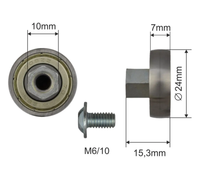 Ролик крыши d=24 мм для работы сдвижных крыш грузовых фургонов, прицепов, полуприцепов. Обладает высокой прочностью и износостойкостью, применяется для ускоренного