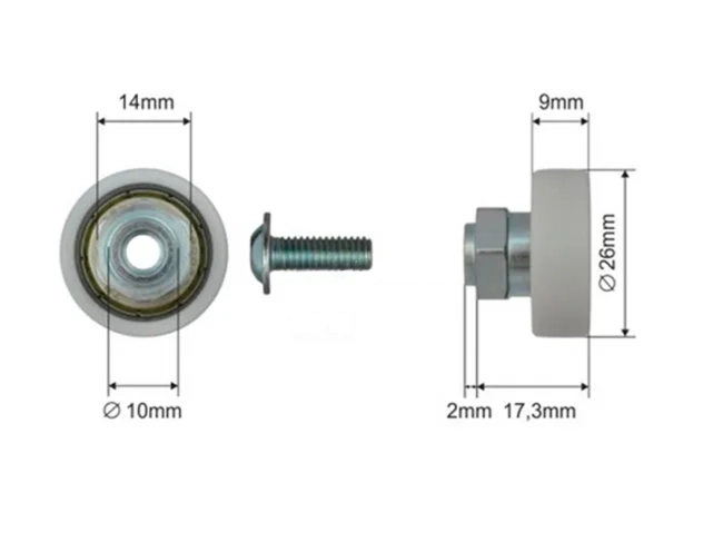 Ролик сдвижной крыши в пластике D=26х17 мм