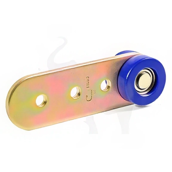Применяется для скольжения боковой шторы вдоль направляющей. Двухсторонний пластиковый ролик, с пластиной под крепление боковой шторы к стойке прицепа, полуприцепа.